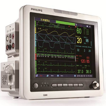 監護儀 飛利浦G60特點:1.可監測參數: 心電(ECG)、呼吸(RESP)、無創血壓(NIBP)、血氧飽和度(SpO2)、脈率(PR)、雙體溫(TEMP).可升級12導心電、呼末二氧化碳(EtCO2...